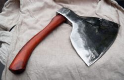 L'angle d'affûtage du couperet doit être de 40 à 50 degrés. En choisissant une poignée, il convient de noter que vous travaillerez principalement à deux mains, sa longueur est de 50 cm et plus, tandis que la poignée doit être confortable, l'outil ne doit pas glisser. La tête du couperet est relativement petite par rapport au produit, ce qui conduit souvent à la frappe de la poignée sur la cale, alors faites attention à la protection de la hache. Il est réalisé sous la forme d'une doublure, en métal ou en plastique résistant aux chocs, située en bas de la tête d'environ 10 cm de long.