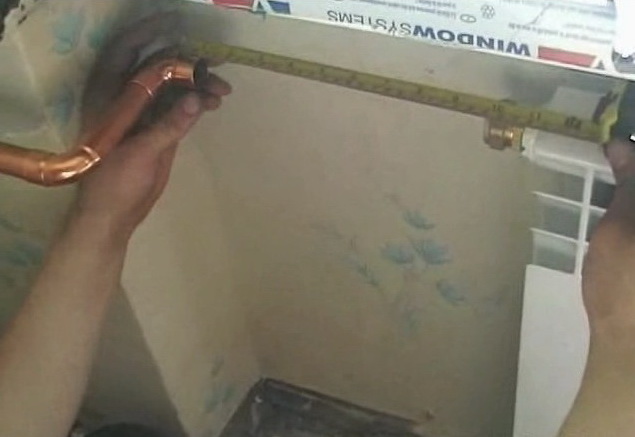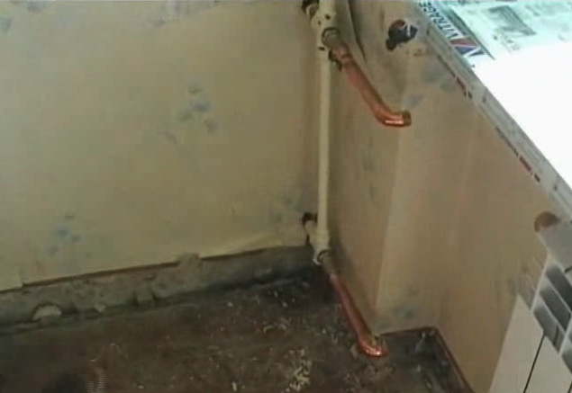 Nous enlevons la plus grande section possible de l'ancien tuyau. Tout dépend de la situation spécifique. Dans la plupart des cas, il s'agit de la distance du radiateur au câblage dans la colonne montante ou au raccord pivotant ou au bouchon du radiateur adjacent. Ensuite, retirez l'ancien radiateur du mur. Ici, soit nous les retirons des boucles, soit ensemble avec eux s'ils ont «grandi ensemble» pendant longtemps. Si les boucles sont restées dans le mur, elles peuvent être dévissées, mais parfois elles sont très fermement maintenues, alors il suffit de scier les boucles de ces boucles près du mur lui-même.