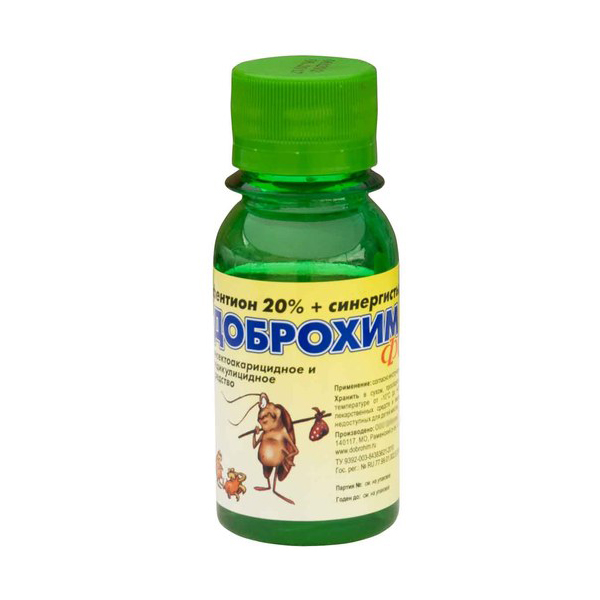 Méthode numéro 8. Dobrohim FOS. Les principaux ingrédients actifs de ce médicament sont le chlorperifos et le fenthion. L'outil est très efficace dans la lutte contre les tiques et tous les autres types d'insectes qui s'installent dans la maison d'une personne. Les araignées «Dobrokhim FOS» sont détruites par des effets destructeurs sur les influx nerveux de ces arthropodes, à la suite desquels ces derniers commencent à crampes, paralysie et mort rapide. L'outil peut être utilisé dans les appartements et les bâtiments résidentiels privés. Utilisez Dobrokhim FOS comme suit. Il est dilué avec de l'eau dans un rapport de 10 ml pour 1 litre, respectivement. Lors du traitement d'un appartement (ou d'une maison) avec ce médicament, les jeunes enfants et les animaux doivent être retirés des lieux. La solution préparée est pulvérisée dans les habitats des araignées. Vous devez essayer d'entrer directement sur les corps d'insectes. Leur mort sera donc inévitable. À la fin du traitement de la pièce, vous devez ouvrir les fenêtres largement et laisser l'air. Ni les adultes ni les enfants ne devraient y être dans les 24 premières heures (au moins). Après cette période, un nettoyage parfaitement humide doit être effectué à l'intérieur. Un traitement d'un appartement ou d'une maison avec l'outil Dobrokhim FOS suffit pour un mois et demi.