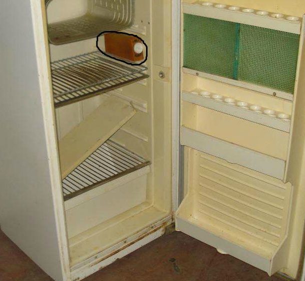 - Povrchová úprava amoniak. Gázová tkanina je navlhčena v amoniaku a důkladně otře celý obsah chladničky, včetně všech jejích ohybů, polic, podnosů a nádob. Po zpracování je vhodné nechat dveře po celou noc otevřené pro zvětrávání. Během čištění používejte gumové rukavice a otevřete okno pro větrání;