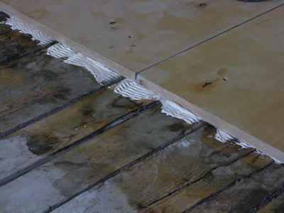 - Før du arrangerer afretningen, skal du omhyggeligt udjævne træplanet, ellers skal du igen, for at udjævne ujævnhederne, gøre afretningen for tyk, hvilket er ekstremt uønsket. Vægten af cement-sandblandingen + vægten af klæbemiddelsammensætningen + vægten af selve flisen kan være uudholdelig for et svagt varp.