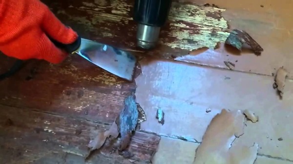 - For at gøre dette skal du fjerne topcoaten såvel som Fjern maling fra brædderne. Der er flere måder at gøre dette på. Den enkleste ting er at påføre specielle færdige vaskevæsker i henhold til belægningstypen. Du kan også bruge en slibemaskine, men vær forberedt på, at der i dette tilfælde vil være meget støv. Eller opvarm den gamle maling konstruktion hårtørrer og fjern med en spatel;