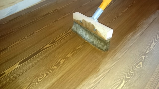 - En velprøvet metode er gentagen belægning af gulvoverfladen med varm tørrende olie og lægning oven på den tørre sammensætning af glasfibermasken;