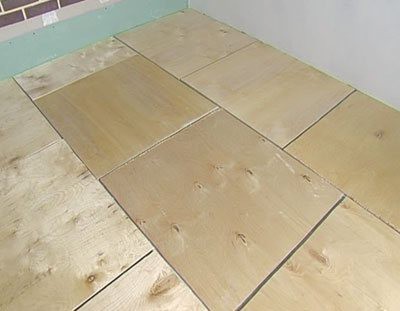 Under fliserne behøver ikke krydsfiner, du har brug for DSP eller GVL. Eller først krydsfiner og derefter TsSP eller GVL. På krydsfiner med selvskærende skruer, på tavler, der flyder i to lag.