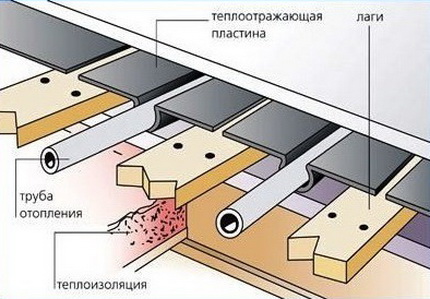 - I dette tilfælde mellem pladerne på undergulvet er det nødvendigt at efterlade mellemrum med betydelig bredde, mellem hvilke specielle termiske plader vil passe, og i dem selve rørene til kølevæsken;