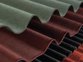 Korrugerede plader med asbestcement mest almindelige blandt alle slags skifer. Materialet er lavet på basis af cement, vand og asbestderfor bliver farven lysegrå. Asbest, jævnt fordelt, forstærker cementmørtelen, mens materialets styrke øges. I dag lykkedes det os at slippe af med den kedelige grå nuance ved farvning færdige skiferplader. Takket være laget maling materialet får yderligere beskyttelses- og styrkeegenskaber.