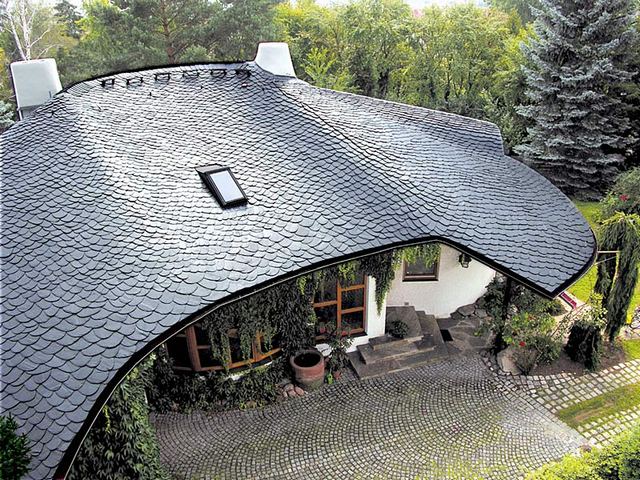 - let at behandle. Gummiskifer klippes let med en kniv, det kan bøjes, så materialet kan bruges til tagdækning af komplekse buede tag;