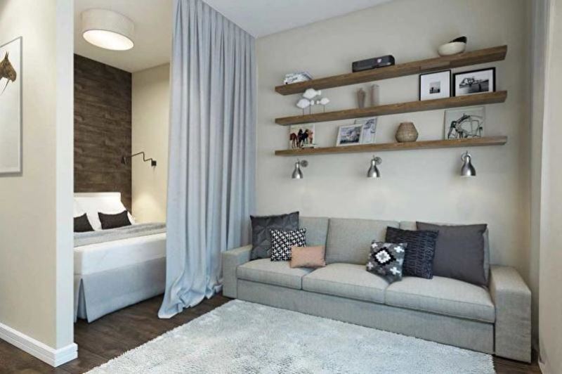 Desværre er det ikke altid muligt at afsætte to fulde værelser. din studiolejlighed skal være rummelig nokså der efter adskillelse af stuen ikke bliver to trange og indelukkede celler. Ideelt set bør rummet have mindst to vinduerså hvert nye rum får naturligt lys, men dette er en temmelig sjælden mulighed, fordi der er fundet mange løsninger til værelser med et vindue.