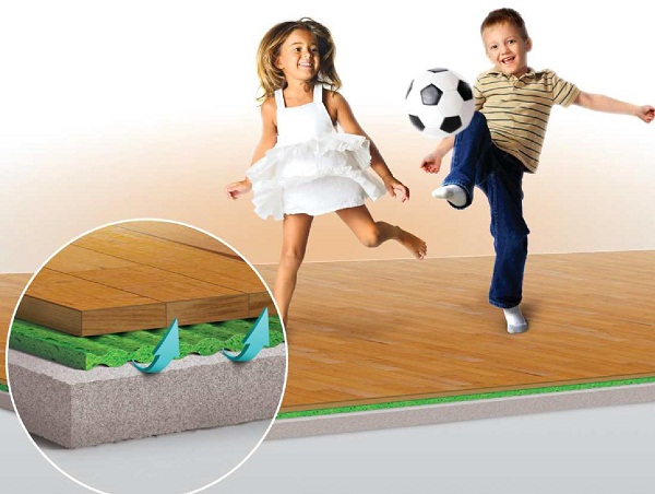 For at undgå denne negative egenskab skal du bruge et underlag under laminatet, der er lagt på det ujævne gulv. Nogle producenter sælger allerede laminerede gulve med special støjabsorptionssystem dette er normalt et laminat i klasse 32-34, som har en forholdsvis høje omkostning. Derfor anbefales det undertiden at bruge enkle laminerede paneler separat med underlaget. Dette er fordelagtigt, da laminatsubstratet er billigt og kan reducere reparationsbudgettet markant.