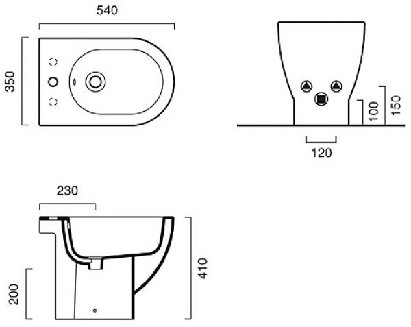 Dimensions du bidet au sol peut varier légèrement selon le modèle choisi et la société du fabricant, mais en moyenne, vous pouvez vous concentrer sur les paramètres suivants: