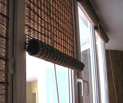 Rolshtora peut être fait non seulement de tissu, mais d'autres matériaux. Par exemple, à partir de pailles ou de bambou. Ces rideaux protègent bien du soleil et créent une atmosphère agréable et confortable. Cependant, sous une forme élargie, ils occupent un peu plus d'espace que les stores en tissu.