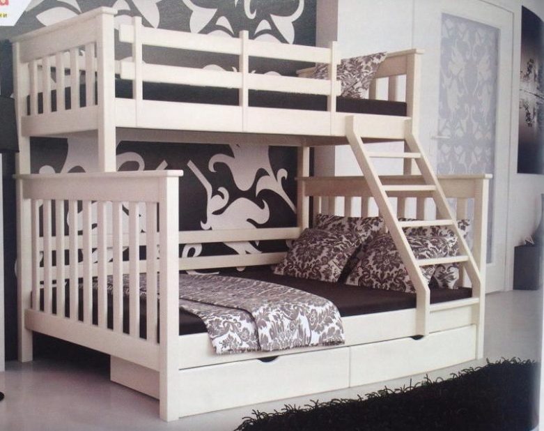 - La conception du lit. Il doit répondre à toutes les normes de sécurité: être stable, supporter le poids nécessaire, aux niveaux supérieurs, la présence obligatoire d'un flanc pour éviter la perte de l'enfant. Assurez-vous de faire attention à la fiabilité des joints bout à bout des éléments du lit. Ils doivent être solidement fixés.