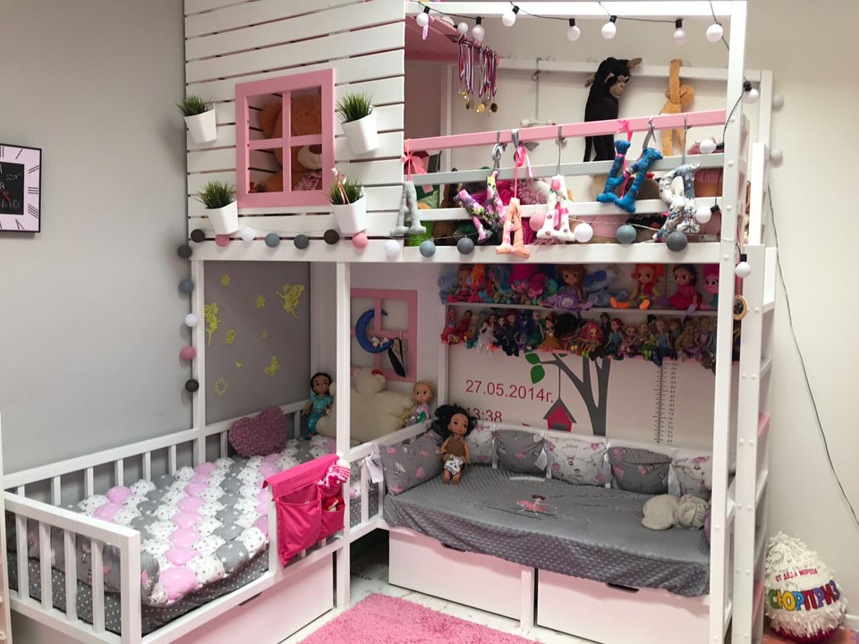 Le lit peut être décoré à la fois dans un style unique et pour chaque enfant séparément en utilisant des éléments décoratifs communs.