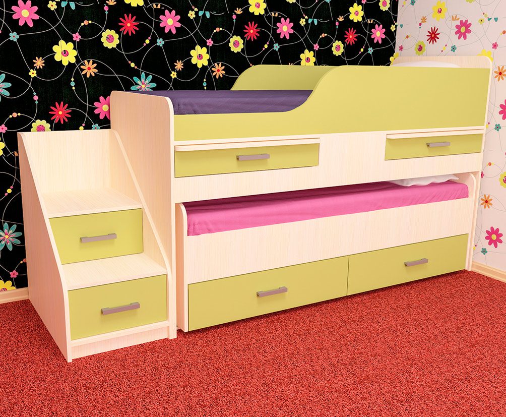 - Lit "Matryoshka". Une fois assemblée, cette conception est une commode. Si nécessaire, les lits se prolongent l'un après l'autre, formant ce que l'on appelle l'escalier. Il s'agit d'un modèle très compact, mais qui a ses inconvénients.Les enfants sont obligés de monter à tour de rôle sur un tel lit et peuvent interférer avec le sommeil de l'autre.