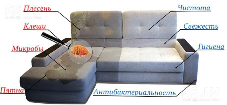 Une caractéristique des meubles avec revêtement en tissu est qu'ils ne tolèrent pas une humidité élevée. Même si le rembourrage est suffisamment dense, l'humidité peut pénétrer dans la charge et, en cas de séchage insuffisant, provoquer une odeur désagréable, des moisissures, le développement de micro-organismes nuisibles, etc.
