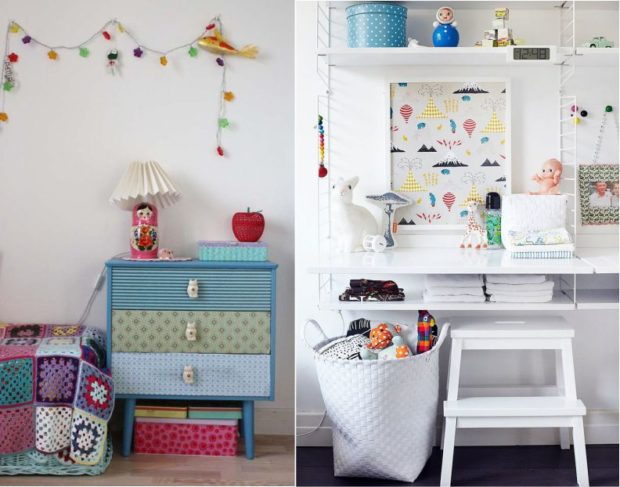 - Für die Aufbewahrung von Kleinigkeiten können Sie die Box verwenden: Textil, Korb, lederbezogen. Sie können aufgelegt werden Regale. Alles, was Sie brauchen, wird zur Hand sein, der Raum wird gemütlich aussehen, aber Sie können den Effekt von Unordnung vermeiden;