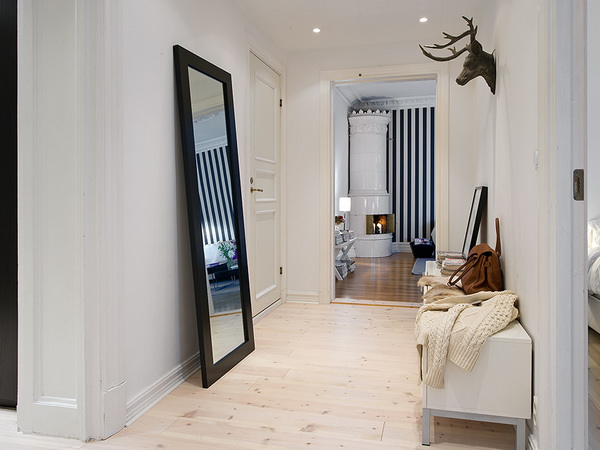 - Geschlecht traditionell mit Holz besetzt, bevorzugt leichte Arten (Buche, Birke, Kiefer, Esche). Breit ist am besten Massivholz, Stück Parkettaber auch Parkettbrett werde tun. Wenn das Budget sehr begrenzt ist, ist auch ein Laminat erlaubt. Natürlich wird dies kein echtes skandinavisches Interieur sein, sondern seine Nachahmung, aber um die glaubwürdigste Kopie zu schaffen, nehmen Sie ein Licht Laminatböden. Ein Teil des Bodens in der Küche (im Bereich des Arbeitsbereichs) kann mit Keramikfliesen oder Stein veredelt werden. Will tun und Feinsteinzeug, die einen Baum genau simulieren können. Im Badezimmer ist es besser, die gleichen Fliesen oder Steine zu verwenden und darauf eine hölzerne Plattform aus Latten zu legen, um den Geist des Innenraums zu bewahren.