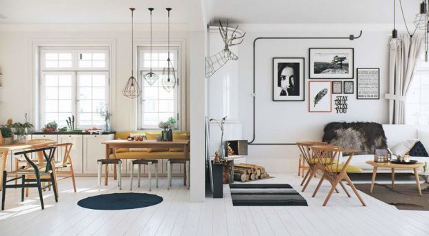 Skandinavischer Stil im Inneren einer Wohnung und eines Hauses: 9 Tipps für die Organisation + Foto