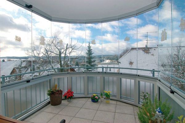 Übrigens, Profis werden Sie nicht von der Idealität eines rahmenlosen Systems überzeugen - sie verbergen die Nachteile nicht und geben dies ruhig zu Seine Hauptfunktion ist schützend, nicht isolierend. Dies ist eine großartige Option für diejenigen, denen kein nützlicher Bereich fehlt und die keinen Balkon oder keine Loggia mit einer starken stationären Rahmenstruktur fesseln möchten. Ob es sich um ein rahmenloses System handelt: Ich wollte - ich öffnete alle Flügel, ich wollte - ich schloss es und bekam eine Barriere gegen Regen, Wind und Diebe. Richtig, bei aller Universalität des Systems, benutze es auf alten Balkonen mit bröckelnden Platten nicht erlaubt. Aus rein ästhetischen Gründen ist eine solche Verglasung nicht für kleine "Topfbauch" -Balkone mit gekrümmten Geländern geeignet.