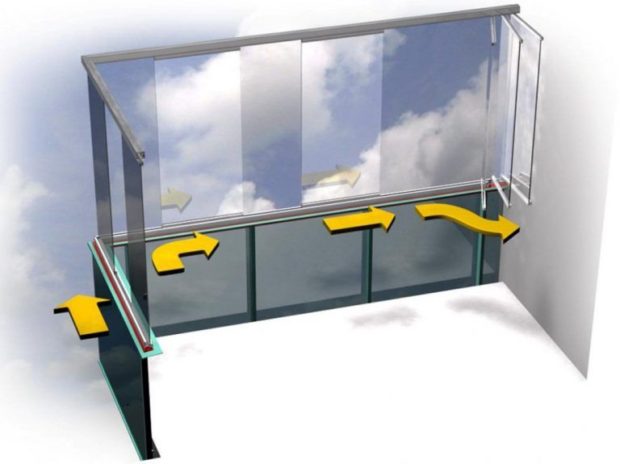 - die Gelegenheit Befreien Sie den Balkon vollständig von den umgebenden StrukturenSchieben Sie den Flügel zur Seitenwand. Es ist praktisch, wenn Sie im Sommer die Wohnung lüften und so viel frische Luft wie möglich einlassen möchten oder einfach auf dem offenen Balkon sitzen möchten.