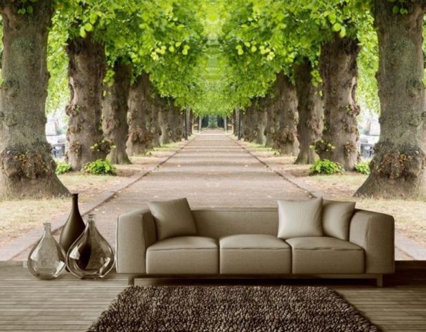 Denken Sie daran, dass die wahre Schönheit einer dreidimensionalen Fototapete in einiger Entfernung zu sehen ist, weshalb die Verwendung in recht geräumigen Räumen empfohlen wird.