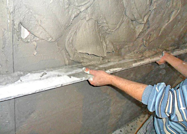 Ahora proceda al acabado rugoso para preparar todas las superficies para colocar materiales decorativos. Las paredes después de desmantelar las baldosas pueden ser ligeramente desiguales, tener agujeros, grietas, etc. Para obtener una superficie planarecomendado para usar mezclas de yesodiseñado para cuartos húmedos. Por supuesto que puedes alinear las paredes hojas de paneles de yeso a prueba de humedad, pero para esto necesitará montar una caja que ocupará unos centímetros de espacio, y en un baño pequeño esta opción es inaceptable. Debe intentar lograr una superficie de pared perfectamente plana: a menudo para el revestimiento de paredes azulejo usado, que tiene una forma geométrica perfecta, y todas las asperezas de la superficie original serán en última instancia muy llamativas y, además, pueden conducir a una disminución en la vida útil del revestimiento.