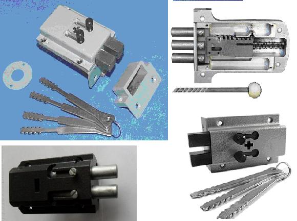 Barras transversales Los mecanismos más simples con un nivel mínimo de protecciónlo que los hace no muy adecuados para la puerta de entrada. Las llaves de tales cerraduras nos son familiares a muchos de nosotros: son planas y en ambos lados hay ranuras que coinciden exactamente con las ranuras del cerrojo. Para abrir o cerrar la cerradura, la tecla mueve la barra transversal. Dichos mecanismos, además, a menudo están equipados con una manija que está diseñada para ser desbloqueada desde el interior, pero tal conveniencia adicional puede resultar en última instancia no muy buena para el propietario del apartamento. Gracias a tales manijas, las galletas, que usan solo un hilo de pescar y un tubo hueco, pueden abrir la cerradura.