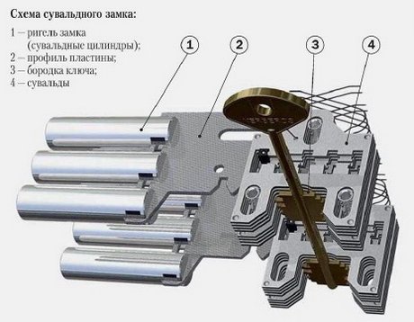 El castillo de nivel fue inventado a principios del siglo XIX, pero sigue siendo muy popular, y para la puerta de entrada será quizás la mejor opción. Las teclas tienen la forma de una varilla larga y redonda, en cuyo extremo, en uno o ambos lados, hay placas con una determinada configuración y tamaño de las ranuras. Cuando la llave entra en la cerradura, son estos huecos los que hacen que las palancas o las placas de la cerradura entren en acción. Puede haber un número diferente de tales palancas, pero se proporciona protección confiable si hay al menos seis de ellas. Incluso si solo una de las placas no tomó la posición deseada, el bloqueo ya no se puede abrir, por lo tanto elegir una llave maestra es muy difícil.