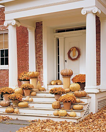 - decoraciones estacionales. El porche de una casa privada para diferentes fiestas y temporadas se puede decorar de diferentes maneras. Por ejemplo, en invierno, ramas de abeto, conos, fresno de montaña, guirnaldas servirán como decoración, en la víspera de Halloween - calabazas, y en otoño - orejas, frutas y hojas amarillas.