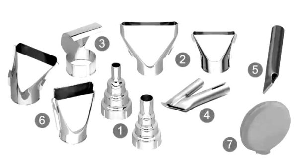 - lakás a fúvókák a régi bevonatok, például lakkok, festékek, háttérképek, furnérok eltávolítására szolgálnak. Vagy vékony műanyag deformálásához (2. szám)