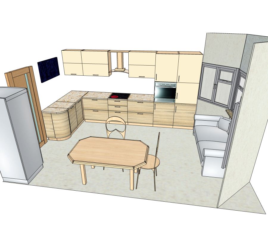 בשלב זה גם לא מפריע לחשיבה ערכת צבע למטבח, אביזרים משומשים, חומרי קישוט ופרטים נוספים. אם המטבח קטן, אל תפריעו לאיסוף דרכים שלה זום חזותי. אם מתוכנן ליצור מחיצות קשתותקונסטרוקציות אחרות, אז יש לציין את מיקומם בפרויקט.