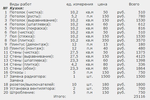 לאומדן נכנסים החומרים הדרושים, פריימר, מרק, אולי שקעים חדשים, חוטים וכן הלאה. זה לא מפריע מראש לחשוב לא רק על הכמות הדרושה, אלא והמחיר של כל החומרים. זה יעזור לתכנן את התקציב שלך בצורה נכונה ויוכל לציין את הצורך לחסוך.