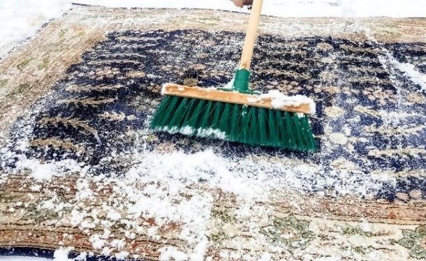 Un tel nettoyage permet de rafraîchir la couleur des revêtements, de se débarrasser des odeurs désagréables et des éventuels acariens. Les contaminants peu volumineux sont bien éliminés des tapis ayant n'importe quelle longueur de velours. Sur un site avec de la neige claire et duveteuse, les articles sont piqués, la neige est balayée par le haut. Après un certain temps, le tapis est retourné, la neige est emportée ou un batteur est utilisé. Répétez la procédure plusieurs fois. Ensuite, le tapis est secoué et séché. Une excellente façon d'apporter l'odeur de fraîcheur givrée dans votre maison, cependant, elle n'est applicable qu'en hiver.