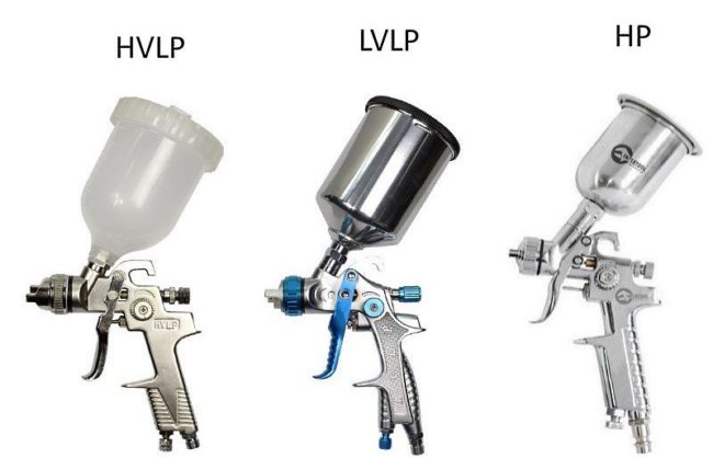 - LVLP (Faible Le volume – Lou La pression) (la pression est faible, le volume est faible). Équipement de la plus haute catégorie, transfert utile - jusqu'à 80%, débit d'air suffisant - 200 l / min. Les pistolets sont chers, mais diffèrent par une consommation minimale de peinture, une pulvérisation fine et uniforme et très peu de «brouillard».