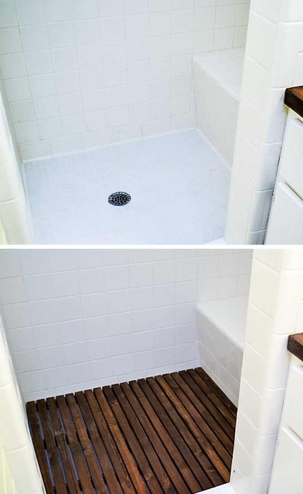 Placez simplement un support en bois confortable et cabine de douche sera différent. De plus, se tenir debout sur un arbre mouillé est beaucoup plus agréable que de se tenir debout sur de l'acrylique ou de l'acier. Le gril peut être sélectionné plus simplement ou rechercher / commander une variante avec un motif.
