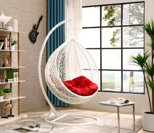 Comme alternative à cette puce - des boules de chaise suspendues en osier. Ils ont l'air non moins impressionnants et gratuits. Mais ils occupent beaucoup d'espace, alors assurez-vous à l'avance qu'une telle innovation ne prendra pas tout l'espace libre dans la pièce.
