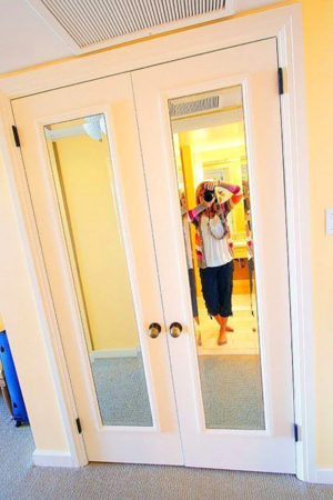 Si la pièce ne dispose pas d'une armoire, vous pouvez essayer de mettre à jour l'ancienne armoire à l'aide de miroirs dans le cadre. Fixez-les de l'extérieur de la porte et peignez le cadre et la base de la même couleur - l'impression d'éléments intégrés. Et si le cadre est avec diverses boucles et motifs, la chose originale se révélera.