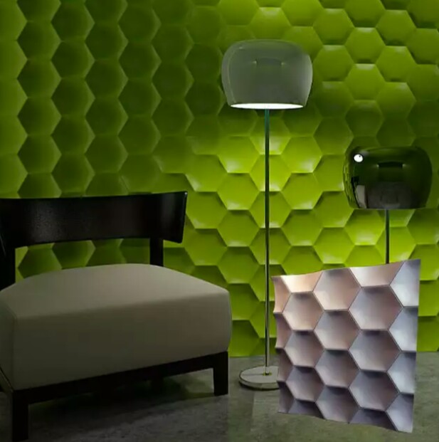 - Nid d'abeilles. Cette version du panneau 3D semble très intéressante dans couloir ou dans le hall. Les nids d'abeilles peuvent avoir des cellules à la fois grandes et petites. Les panneaux peuvent être lisses et ne suivre que les contours des nids d'abeilles, ou être volumineux et dépasser ou se noyer les uns par rapport aux autres à des profondeurs différentes. La dernière option semble plus spectaculaire et réaliste. Les nids d'abeilles peuvent avoir à la fois la forme hexagonale habituelle et être légèrement allongés. Cet effet ajoute plus de volume à la surface sur laquelle il est utilisé.