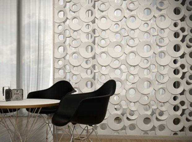 - Cloisons. Vous ne pouvez pas imaginer à quel point la cloison en panneaux 3D est belle par rapport à la plaque de plâtre. Le plus incontestable de ces partitions est facilité d'installation et la possibilité de le faire translucide. Ainsi, la pièce ne semblera pas limitée et la cloison elle-même semblera aérée et légère. Et la lumière, réfractant et tombant dans les intervalles de l'ornement, peut créer un jeu d'ombres unique. Les partitions peuvent avoir les deux pratiqueà la fois esthétique et la fonction.