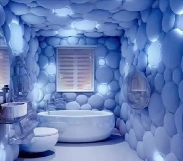- Bulles et sphères. Imaginez un spectacle de bulles de savon! Et sur ton mur? Il y a des panneaux qui ressemblent vraiment grand des bulles différentes tailles. Il a l'air très inhabituel et ressemble immédiatement à un vaisseau spatial. Il y a des panneaux qui ressemblent à des gouttes de pluie sur du verre ou des cercles sur l'eau, ou simplement de petits ovales disposés dans un ordre aléatoire et se croisant à différents endroits. Ces panneaux conviendront la salle de bainDe plus, il existe des panneaux 3D résistants à l'humidité.