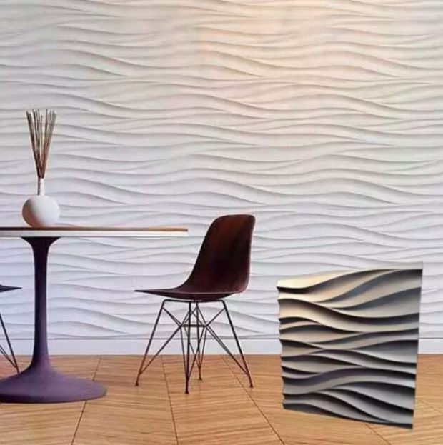 - Lignes et vagues. Il s'agit de la forme la plus simple et la plus courante de panneaux 3D. Ils ont un très doux lisse formes, et la largeur et l'intensité des lignes sont assez diverses. Ils peuvent avoir une direction horizontale, verticale ou diagonale et simuler des virages lumineux qui laissent des vagues marines ou de grandes bandes de différentes largeurs sur le sable.Ils peuvent également avoir différentes hauteurs de saillie au-dessus de la surface principale du panneau et être à peine perceptibles ou caractéristiquement prononcés. Ce motif est très bon pour les loisirs. Cet ornement calme et discret sert de détente et donne une sensation de confort.