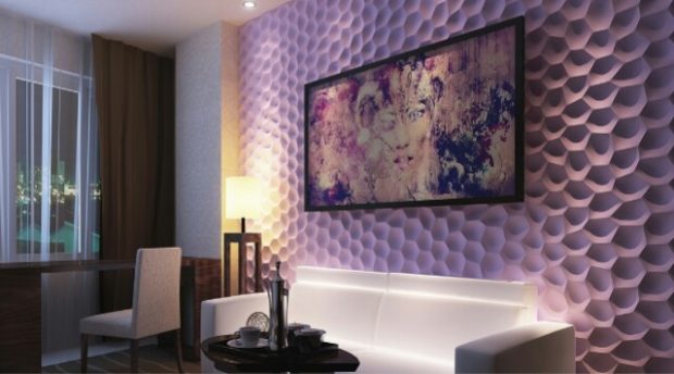 - Polyvalence. Toutes sortes de dessins en trois dimensions, proposés par les fabricants, conviendront à n'importe quelle pièce. Ils sont excellents complément comment l'intérieur salon et chambres à coucher ou même la cuisine. Les panneaux 3D s'adaptent à tous les styles d'intérieur, lui conférant des caractéristiques uniques. Vous pouvez peindre les panneaux, les ouvrir avec du vernis ou papier peint. Vous pouvez effectuer à la fois une pose transparente et mettre en surbrillance spécifiquement chaque dalle. Quoi que vous choisissiez, il sera de toute façon unique.