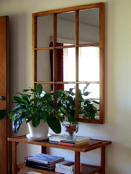 - Dans couloir Une option idéale serait d'utiliser une surface miroir. Cela est dû à la géométrie de cette pièce, qui nécessite simplement une expansion supplémentaire. Une telle fenêtre peut décorer petit rebord de fenêtre qui servira de lieu de stockage des clés et autres petits objets. Et si vous vissez de petits crochets, vous pouvez accrocher des parapluies ou des petits sacs. Un tel élément de conception rendra cette salle ennuyeuse moins ordinaire et fera parfaitement face à la tâche de concevoir une petite zone vide.Et si vous placez une fenêtre imaginaire en miroir en face de l'entrée du couloir, ses éléments intérieurs s'y refléteront et le couloir deviendra un peu plus large et plus spacieux.