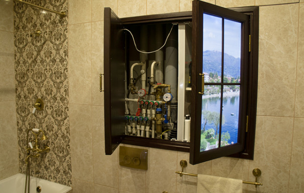 - Masquer les conséquences échoué réparer cela peut se produire en essayant aligner des murs très courbes. Dans les maisons en briques, la maçonnerie est très souvent réalisée de manière inégale avec des saillies ou des dépressions tangibles. Si vous essayez de résister à un avion, à cause des grandes buttes, vous devez prendre beaucoup de précieux centimètres d'espace. Il vaut mieux cacher les inégalités évidentes sous la surface de la fenêtre imaginaire. Au fait, en dessous, vous pouvez cacher et certains les communications ou un lieu de câblage réseau important.