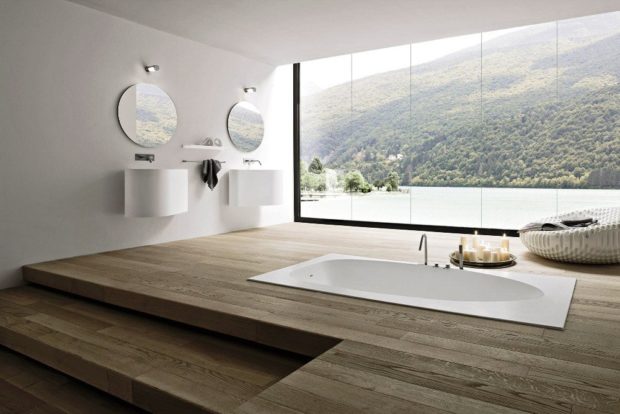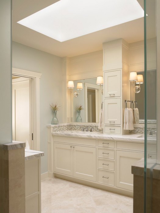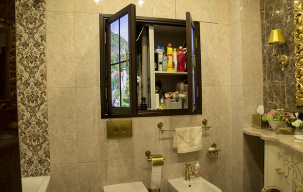 - Dans la salle de bain la fausse fenêtre a l'air très inhabituelle et originale. Ici, un miroir et une fenêtre paysage conviendront. Il n'est pas recommandé de placer cet élément directement au-dessus de la baignoire, même si vous protégez l'image avec du verre incassable, de la vapeur et de la condensation s'accumuleront sur sa surface. Une exception est une image dessinée par waterproof peinture acryliquequi est capable de résister à un contact constant avec l'eau. Fenêtre miroir même une petite taille agrandira une petite pièce, et un plafond en verre opaque avec rétro-éclairage remplira la pièce d'une lumière douce et agréable.