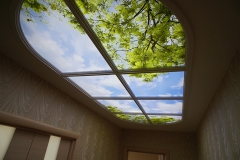 - Fenêtre de plafond - C'est le type de décoration le plus populaire, apprécié par de nombreux designers. Le faire vous-même est également possible pour beaucoup. Il y a trois options placer la fenêtre sur le flux. D'abord se produit le plus rarement - lorsque le plafond est uniforme et pour son aspect esthétique, il n'a qu'à être peint. Sur un tel plafond, équiper une fenêtre est aussi simple que sur un mur. Pour ce faire, suivez les instructions ci-dessus. L'option suivante consiste à monter la fenêtre sur plafond en plaques de plâtre. Il s'agit de l'option la plus courante. Dans ce cas, pour lui, vous pouvez faire une petite niche pour y noyer toute la structure. De plus, sur les parois latérales de la niche, vous pouvez placer un rétro-éclairage. Une autre option placement du rétroéclairage - juste au plafond. Dans ce cas, il est nécessaire de le fermer avec un motif collé sur du plastique. Pensez à connecter le câble au luminaire à l'avance. Pour ce faire, il suffit de faire de petits trous dans la paroi latérale de la boîte. Comme vous l'avez peut-être deviné, la boîte est montée à partir de profils métalliques. Alors séquence: installation de la boîte, fixation du rétro-éclairage, câblage, fixation de l'image. De petits coins métalliques rembourrés autour du périmètre de la boîte aideront à garder le plastique dans le cadre. Après cela, il est nécessaire de coudre le reste du plafond au niveau de la fenêtre avec des cloisons sèches.