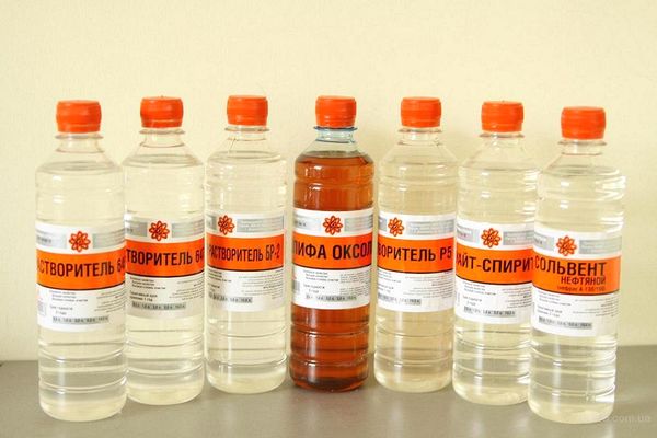 - Le moyen le plus courant et le plus abordable pour diluer ce type de peinture est white spirit. Il est obtenu lors du processus de distillation des produits pétroliers. Malgré cela, il est considéré comme l'un des plus inoffensifs et a l'odeur la moins âcre. Il est également utilisé pour éliminer huile taches de la surface avant le revêtement et l'élimination d'un défaut visqueux. Avec lui, vous pouvez laver vos pinceaux après le travail, accélérer le processus de séchage des formulations d'huile, protéger la surface en bois de l'exposition à l'humidité et aux scolytes.