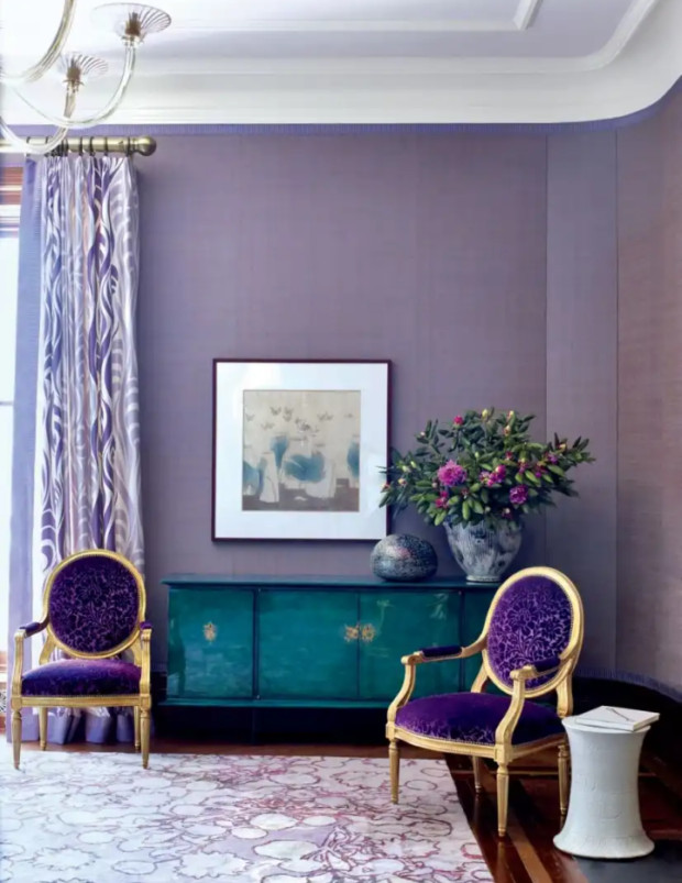 - Bleu + pourpre. Ces couleurs sont très proches dans le spectre des couleurs et se complètent très harmonieusement. Mais pour une raison quelconque, une telle union utiliser très rarement. Par conséquent, si vous voulez vraiment créer intérieur unique alors c'est exactement ce dont vous avez besoin! La composition sera très luxueux et riche. Les profonds sont particulièrement beaux nuances de violet saturé - cobalt et améthyste. Il est conseillé de les utiliser comme accents, le bleu comme couleur complémentaire et les couleurs pastel comme couleurs principales. Cela est dû au fait que l'excès de violet déprime l'effet sur la psyché.