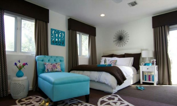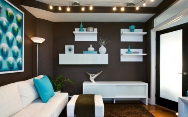 Les salons sont magnifiques notes turquoises. Ils apportent un certain luxe et mystère à l'intérieur de la pièce. Dans une telle couleur peut être faite comme des détails mineurs, par exemple, plusieurs rayures sur papier peint et une paire d'oreillers, et une chaise entière ou un grand tapis pour tout le périmètre. Ce sera très approprié utiliser grand miroirs pour inscription un des murs dans une pièce marron. Ils sont visuellement va augmenter elle l'espace.