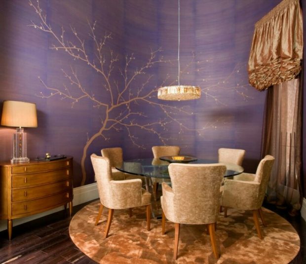 - Marron + pourpre - c'est le plus relaxant de possible les options. Si vous êtes très fatigué au travail, mentalement et physiquement, et lorsque vous rentrez chez vous, vous ne rêvez que de vous allonger et de ne penser à rien, alors vous avez trouvé l'intérieur parfait pour cela. Une pièce décorée avec des nuances plus foncées des deux couleurs aura un peu mystérieux et image mystique. Tout se passera dedans, comme au ralenti. Vous n'avez même pas envie de bouger, mais seulement une un sentiment de paix. C'est parfait pour chambres. Cependant, l'ayant diversifié avec de petits éléments de nuances plus claires d'une tonalité différente, il s'avérera intéressant de concevoir la salle de bain.
